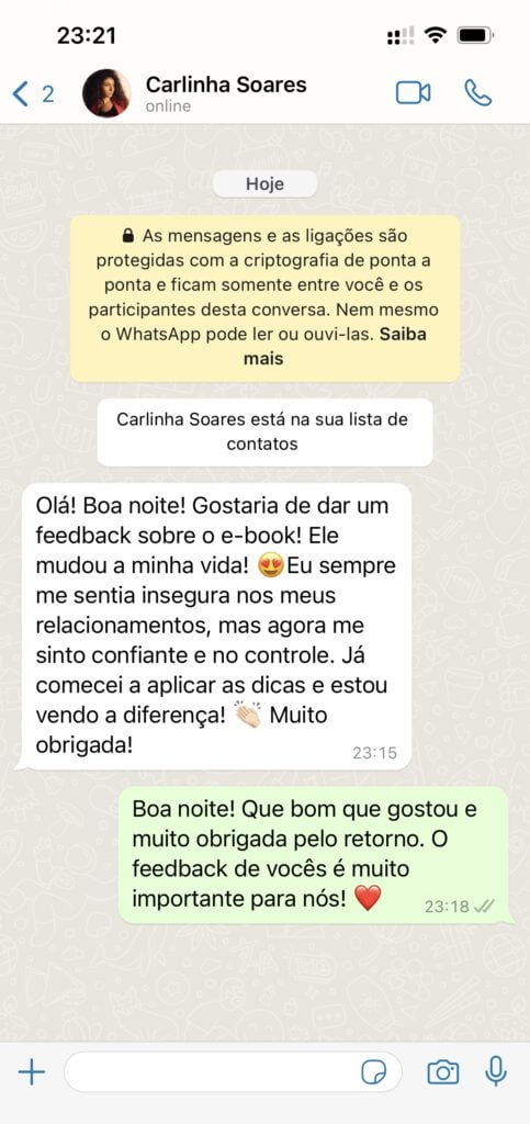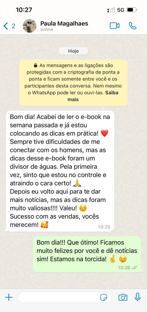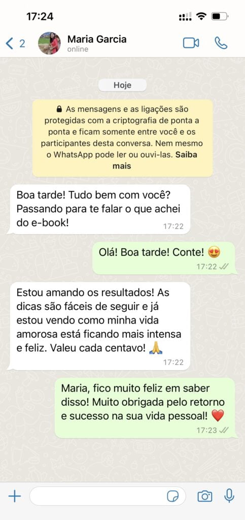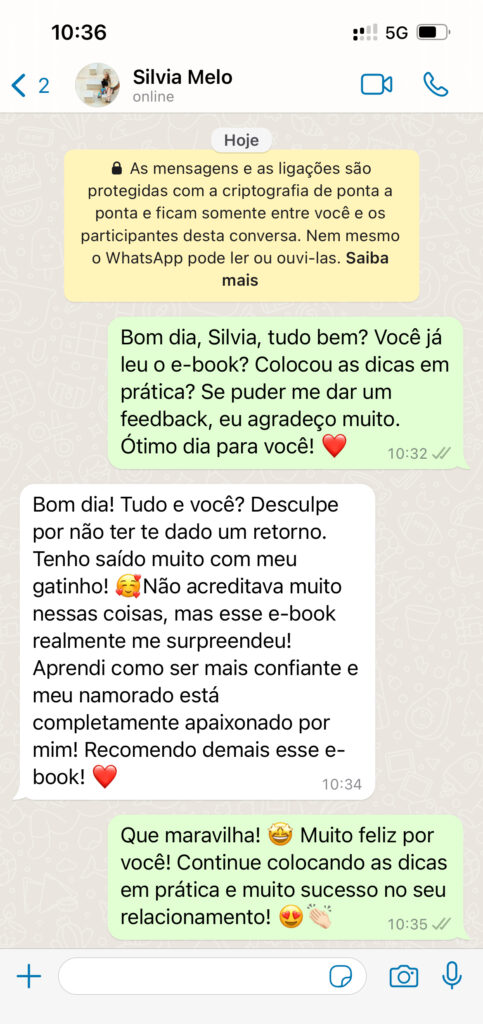 Ao aplicar as táticas de comunicação e conquista ensinadas, você vai perceber que os relacionamentos não serão mais uma fonte de ansiedade ou frustração. Você saberá exatamente o que fazer para manter o homem certo apaixonado por você, sem medo de traições ou desinteresse. Ele vai querer estar ao seu lado, sempre.